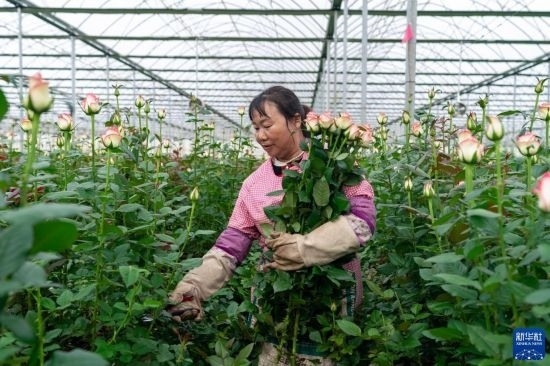 清晨,在云南省昆明市晉寧區(qū)云天化晉寧花卉產業(yè)現代化示范園內,品類各異的鮮花競相綻放,花農們在現代化大棚里忙著采摘、搬運。云天化晉寧花卉產業(yè)現代化示范園是集育苗、智能溫室大棚、水肥一體化、無土綠色栽培、全程數字化管理系統,以及鮮切花采后處理、預冷儲藏等為一體的高標準設施農業(yè)產業(yè)園區(qū),年產鮮切花1.6億枝。