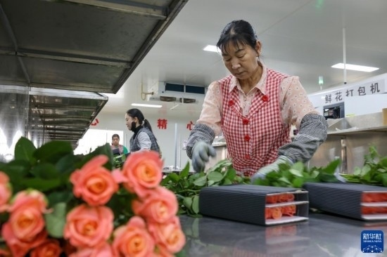 這是云天化晉寧花卉產業(yè)現代化示范園內的鮮花包裝流水線(7月12日攝)。新華社記者 陳欣波 攝