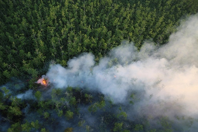 進入夏季,內(nèi)蒙古大興安嶺林區(qū)北部持續(xù)干旱少雨,干雷暴活動異常頻繁。受異常氣候等影響,8月6日以來,內(nèi)蒙古大興安嶺林區(qū)北部相繼發(fā)生多起雷電森林火災,呈多點集中爆發(fā)態(tài)勢。由于發(fā)生雷電森林火災的地點海拔高度多在1100米至1400米之間,林間偃松密布,灌木叢生,站桿倒木多,樹木油脂含量高,地下腐殖層厚度達50多厘米,撲火隊伍行進艱難,撲救、清理難度極大。
