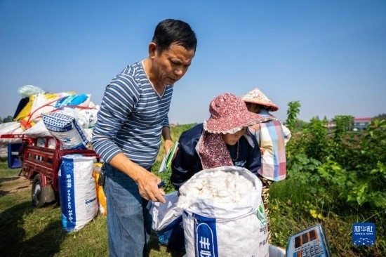 金秋十月,湖南省益陽市南縣種植的4萬余畝棉花相繼進(jìn)入采收季,當(dāng)?shù)孛揶r(nóng)趁著晴好天氣采摘棉花,田間地頭一片忙碌的景象。
