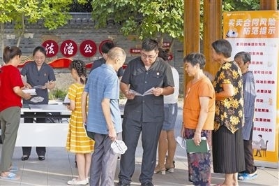 圖⑧:送法入村。圖為楓橋法庭通過設(shè)立“糾紛移動普法站”,來到轄區(qū)各村鎮(zhèn)普法宣傳,送上普法小手冊,提醒村民用好法律知識,提前防范各類風(fēng)險(xiǎn)。