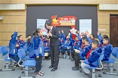 圖⑨:送法進(jìn)校園。圖為諸暨法院法官來到浣東小學(xué)普法授課,結(jié)合小故事、小案例為同學(xué)們答疑解惑,豐富法律知識。