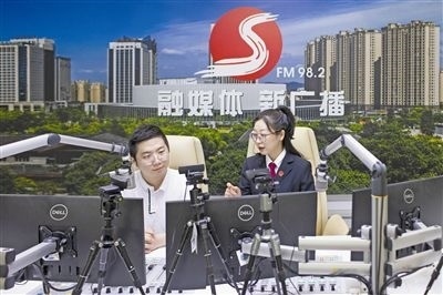 圖⑥:“云端”普法。圖為諸暨法院干警走進(jìn)諸暨市FM98.2融媒體廣播間,為線上聽眾普及法律知識,并積極宣傳新時(shí)代“楓橋經(jīng)驗(yàn)”。