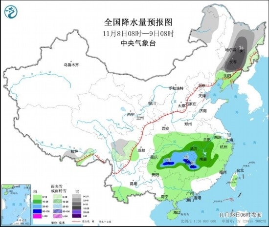中新網(wǎng)11月8日電 據(jù)中央氣象臺網(wǎng)站消息,預(yù)計(jì)8日至9日,黑龍江中南部、吉林中西部、遼寧北部等地有暴雪和低溫冰凍災(zāi)害風(fēng)險(xiǎn),關(guān)注對交通運(yùn)輸、建筑設(shè)施安全、農(nóng)牧業(yè)、電力通信等的影響;湖南、江西、浙江、福建等地降雨較強(qiáng),注意防范次生災(zāi)害。