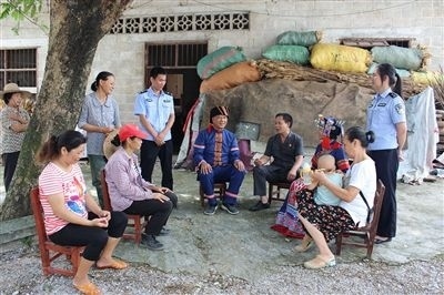 大化法院雙語巡回法庭到當(dāng)事人家中調(diào)解案件。
