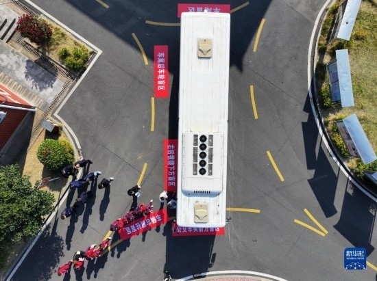 12月1日,在長沙市望城區(qū)新河學(xué)校,學(xué)生參加汽車盲區(qū)體驗活動(無人機(jī)照片)。