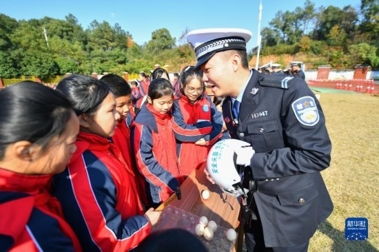 當(dāng)日,長沙市公安局望城分局交警大隊的民警走進(jìn)農(nóng)村地區(qū)學(xué)校,通過交警手勢演示、鐵騎技能展示、交通標(biāo)識競答、頭盔碰撞模擬體驗、汽車盲區(qū)體驗等多種形式,開展道路交通安全宣傳活動,幫助學(xué)生們提高交通安全意識。