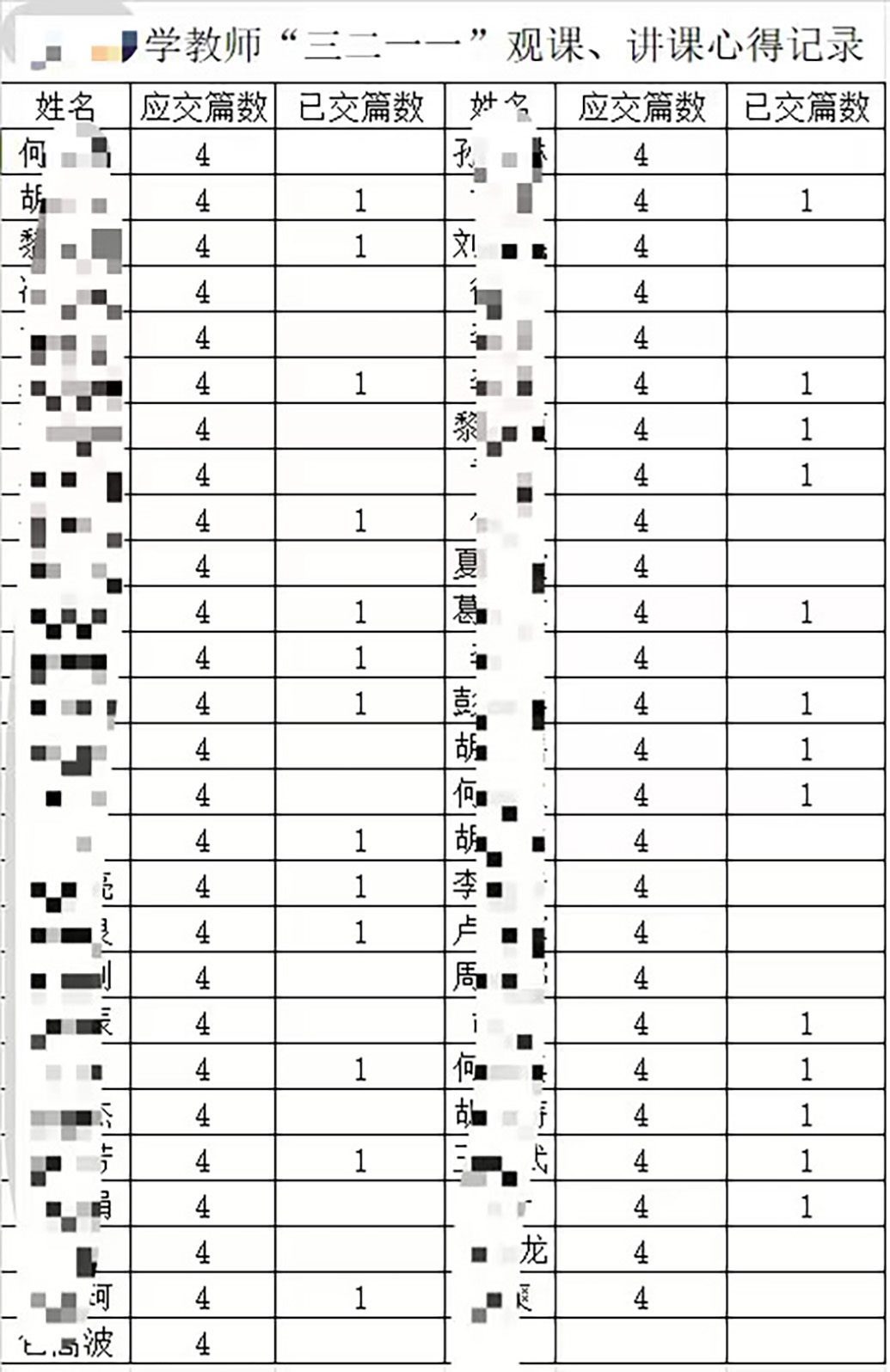 作為班主任,她承擔管理班級的責任,學校為了“看見”管理內(nèi)容,會安排教師們填寫各種各樣的表格,包括每日缺勤記錄表,每日、每周、每月、每學期的安全記錄表,班主任工作手冊,行為規(guī)范課堂記錄表,家訪表,家長會座談表等。表格一多,何雪夕免不了“造假”。