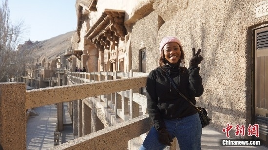圖為萊索托留學(xué)生茉莉在敦煌莫高窟進(jìn)行參觀。受訪(fǎng)者供圖