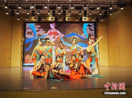 圖為萊索托留學(xué)生茉莉(后排中)及同學(xué)受邀前往山東表演敦煌舞。受訪(fǎng)者供圖