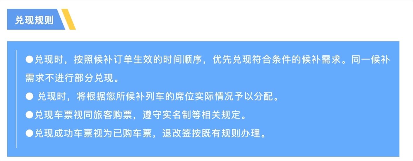 鐵路12306關(guān)于“候補購票訂單兌現(xiàn)”的提示