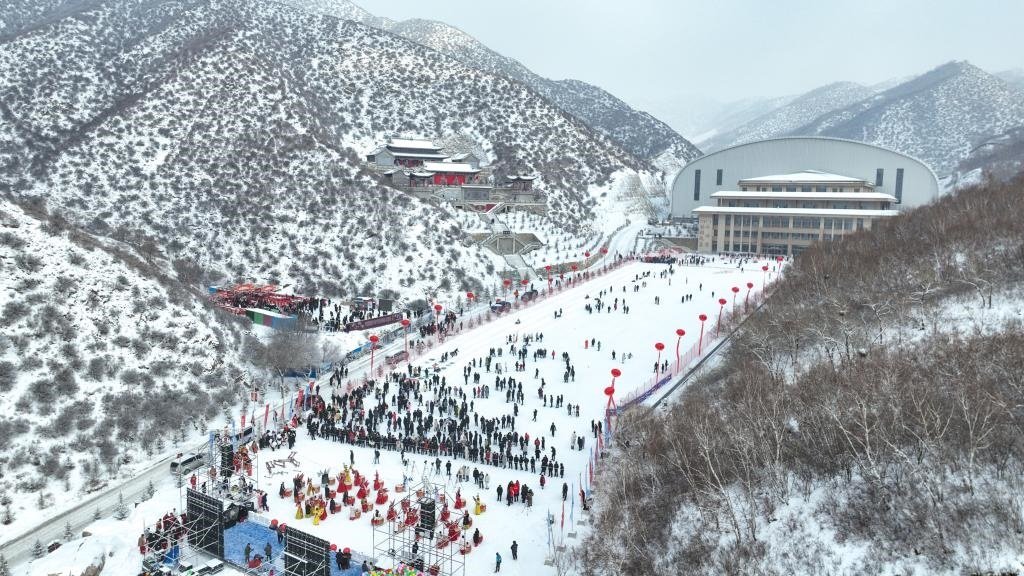 2023年12月30日,游客在內(nèi)蒙古卓資縣林胡古塞景區(qū)參觀游玩(無人機(jī)照片)。新華社記者 貝赫 攝