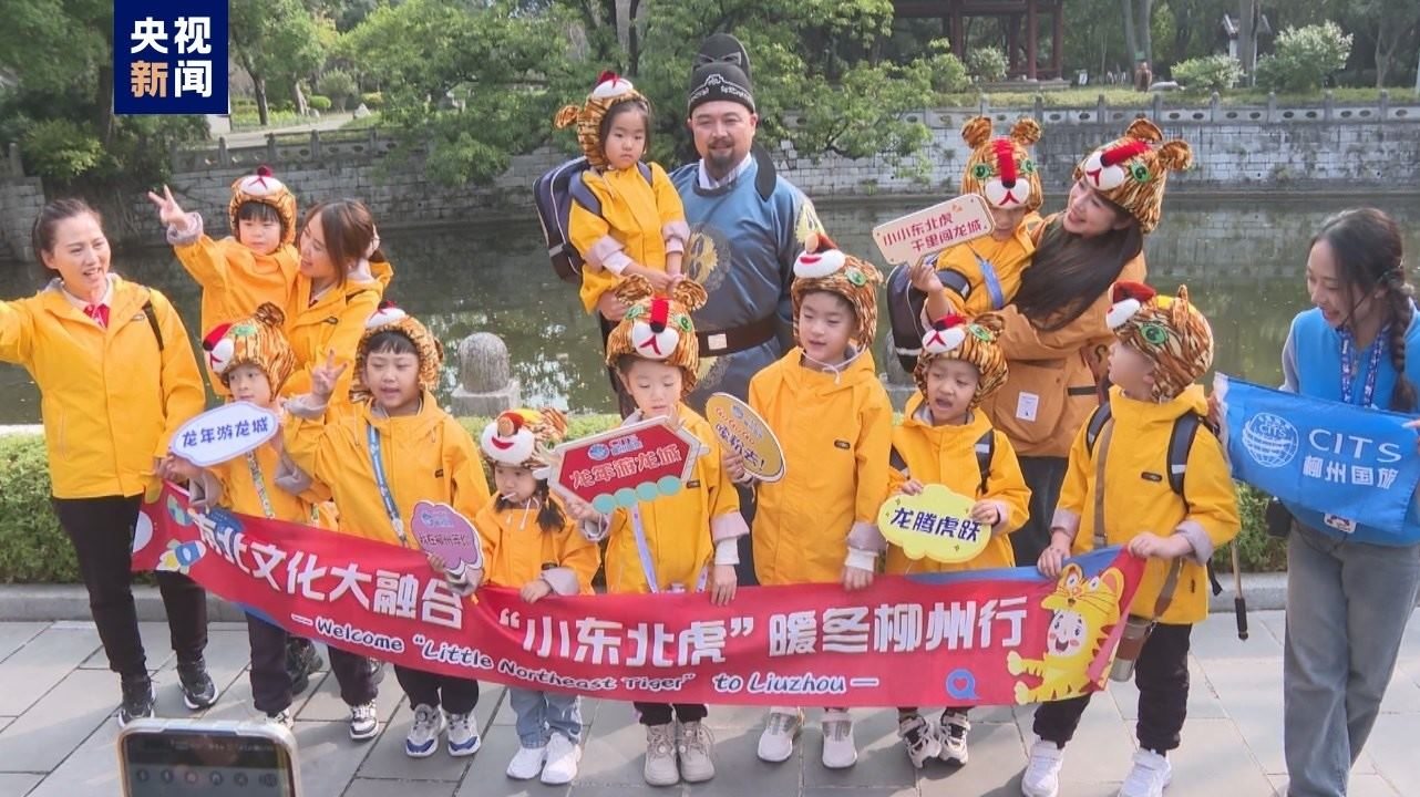 小朋友們統(tǒng)一穿著黃色外套,頭戴可愛(ài)的老虎帽,就連推著的行李箱也是“虎紋”的,萌感十足。和“小砂糖橘”一樣,“小東北虎”們最大的不過(guò)6歲,最小的才3歲,一下飛機(jī),“小東北虎”就收到了暖心禮物。10日,“小東北虎”來(lái)到柳侯祠,訪一代宗師柳宗元,感受柳州的千年歷史文化,在馬鞍山公園俯瞰了整座柳州城,在螺螄粉文化展館打卡柳州螺螄粉,夜游百里柳江,玩得不亦樂(lè)乎。