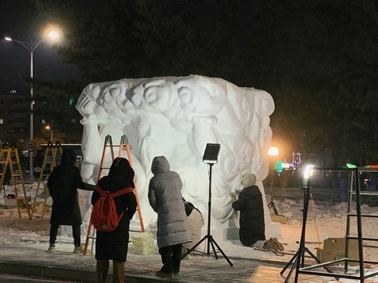 能夠與冰雪“親密接觸”,中國美術(shù)學(xué)院的熊竣苓要感謝剛剛在哈爾濱落幕的第十六屆國際大學(xué)生雪雕大賽。他所在的團(tuán)隊(duì)由包括他在內(nèi)的4位南方同學(xué)組成,他們創(chuàng)作的雪雕作品《盤古開天》獲得了一等獎(jiǎng)。這段比賽經(jīng)歷讓第一次去哈爾濱的熊竣苓非常難忘,“最近哈爾濱很火,雖然我是去參加比賽的,但能去哈爾濱一趟,也非常激動(dòng)了。我記得我們從機(jī)場(chǎng)到酒店的路上,透過車窗看到了霧凇,一下子就讓我這個(gè)南方人感受到了北方冬天的美?!彼貞洠鲅┑駮r(shí),他和另外3位同學(xué)都既緊張又興奮,“我們都是第一次觸摸雪做雕塑,此前在學(xué)校練習(xí)時(shí)是用泥巴或石膏,跟雪是完全不同的質(zhì)感,所以過程中我們都小心翼翼,非常緊張;同時(shí),我們都是第一次見到這么多雪,太激動(dòng)了?!?/p>