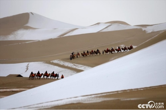2024年1月24日,受冷空氣影響,甘肅省敦煌市迎來今年首場降雪。