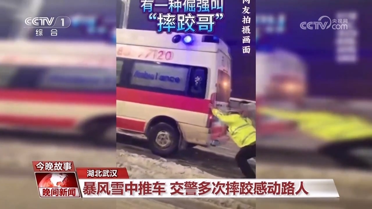 暴風(fēng)雪中推車?交警多次摔跤感動(dòng)路人