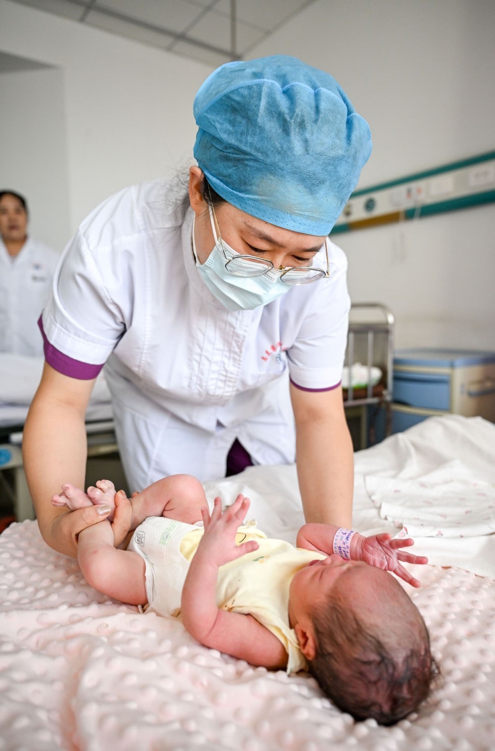 2月10日,在湖南省邵陽(yáng)市隆回縣人民醫(yī)院,醫(yī)生在護(hù)理一名剛出生的“龍寶寶”。新華社發(fā)(范暉 攝)