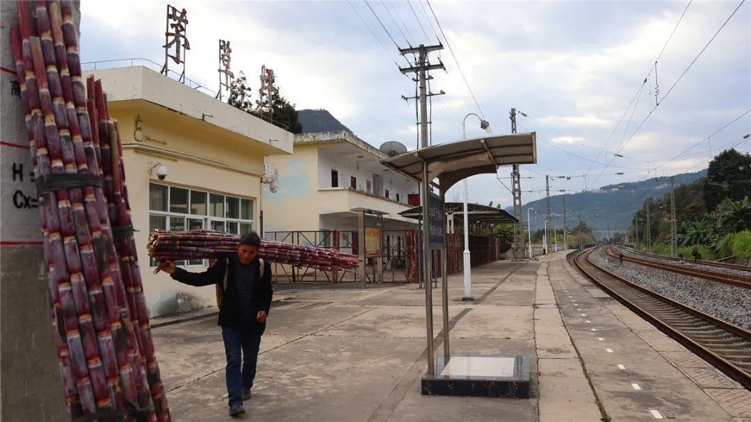 3月2日一大早,小小的茅草坪站就坐滿了背著農(nóng)產(chǎn)品前來乘坐“慢火車”的群眾。蔗農(nóng)李進賢準(zhǔn)備從茅草坪站乘坐6081次慢火車給在松河的客戶送甘蔗。