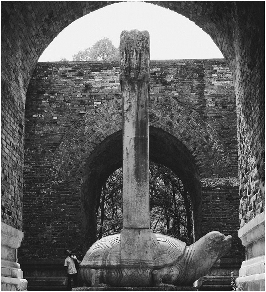 近日,有網(wǎng)友向南京市政府方面反映,其發(fā)現(xiàn)明孝陵神功圣德碑被刻有英文。4月12日,中山陵園管理局在人民網(wǎng)“領導留言板”上回應稱,經我們翻閱檔案、調查核實,該處刻劃地點在神功圣德碑的龜砆上,根據(jù)專家推斷存在已有百余年,非近期刻劃。