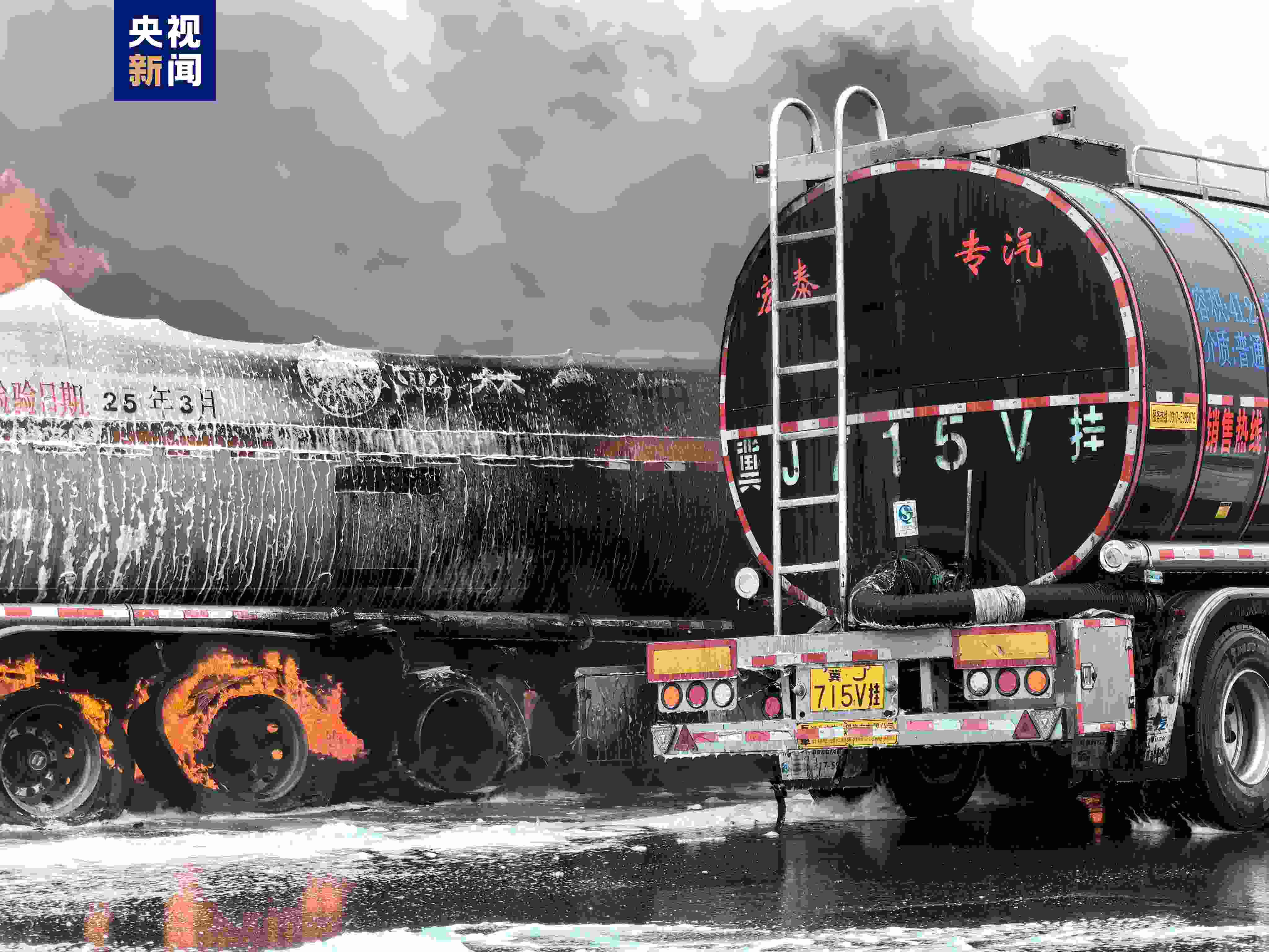 今天(19日)上午,天津市濱海新區(qū)秦濱高速臨港收費(fèi)站出口有兩輛罐車(chē)發(fā)生交通事故后起火。經(jīng)偵察,現(xiàn)場(chǎng)為一輛載有潤(rùn)滑油的罐車(chē)與一輛載有柴油的罐車(chē)相撞,造成兩輛罐車(chē)起火。