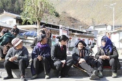 圖①:法院干警剛到彝寨,彝族同胞便聚集過來。