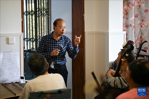 4月15日,樂隊指揮王存大為大家講解演奏細節(jié)。新華社記者 胥冰潔 攝