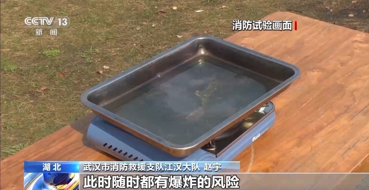 武漢市消防救援支隊特勤大隊 杜夢天:點燃的爐口不斷升溫,通過熱傳導,另一個卡式爐的氣瓶艙也會升溫。一旦溫度達到了臨界點,那么氣瓶可能就會發(fā)生爆炸,導致使用人員受傷。
