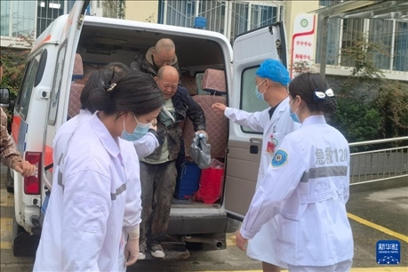 8月3日,傷員被送往康定市人民醫(yī)院接受治療。新華社發(fā)