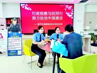 浙江省杭州市臨平區(qū)檢察院進(jìn)社區(qū)開(kāi)展“行政檢察,與民同行”主題普法宣傳活動(dòng),為居民提供法律咨詢(xún)服務(wù)。資料圖片