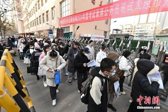 2023年11月26日,山西省太原市,考生步入考場。當日,中央機關及其直屬機構2024年度考試錄用公務員公共科目筆試開考。中新社記者 韋亮 攝