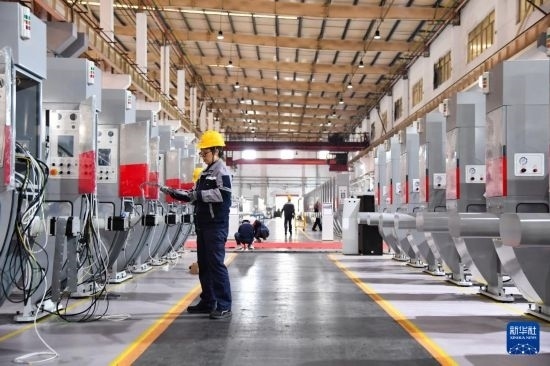 10月23日,工作人員在位于陜西省渭南市高新區(qū)的陜西北人印刷機(jī)械有限責(zé)任公司生產(chǎn)車間組裝產(chǎn)品。