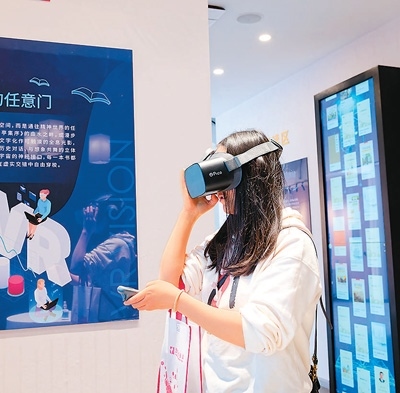 近日,云南省第四屆全民閱讀大會(huì)在昭通市昭通古城舉行。活動(dòng)包括惠民書(shū)展、非遺體驗(yàn)、文創(chuàng)展銷(xiāo)等活動(dòng),營(yíng)造愛(ài)讀書(shū)、讀好書(shū)、善讀書(shū)的書(shū)香氛圍。圖為市民在云南省昭通市一家書(shū)店體驗(yàn)VR閱讀。