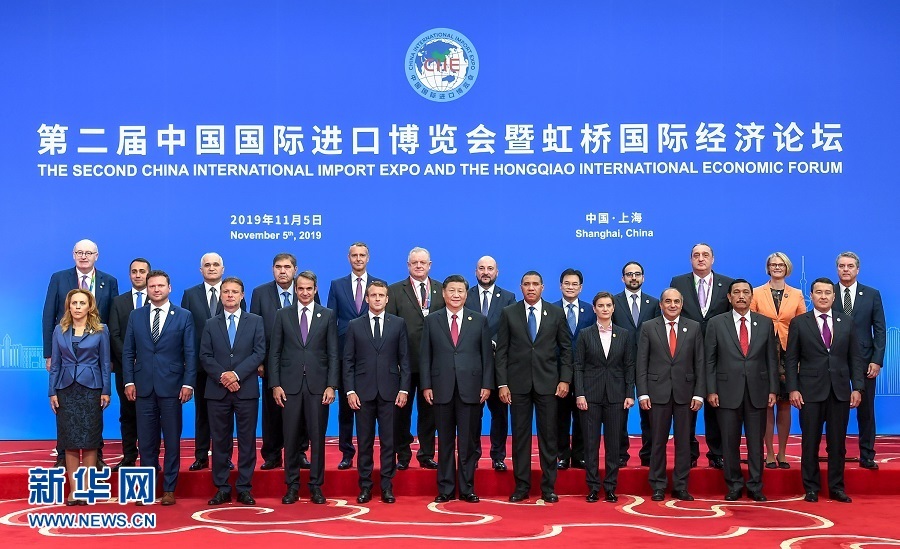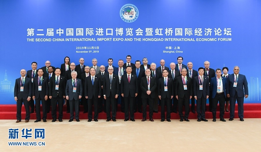 11月5日,第二屆中國(guó)國(guó)際進(jìn)口博覽會(huì)在上海國(guó)家會(huì)展中心開(kāi)幕。國(guó)家主席習(xí)近平出席開(kāi)幕式并發(fā)表題為《開(kāi)放合作 命運(yùn)與共》的主旨演講。這是開(kāi)幕式前,習(xí)近平同外方領(lǐng)導(dǎo)人集體合影。新華社記者謝環(huán)馳攝