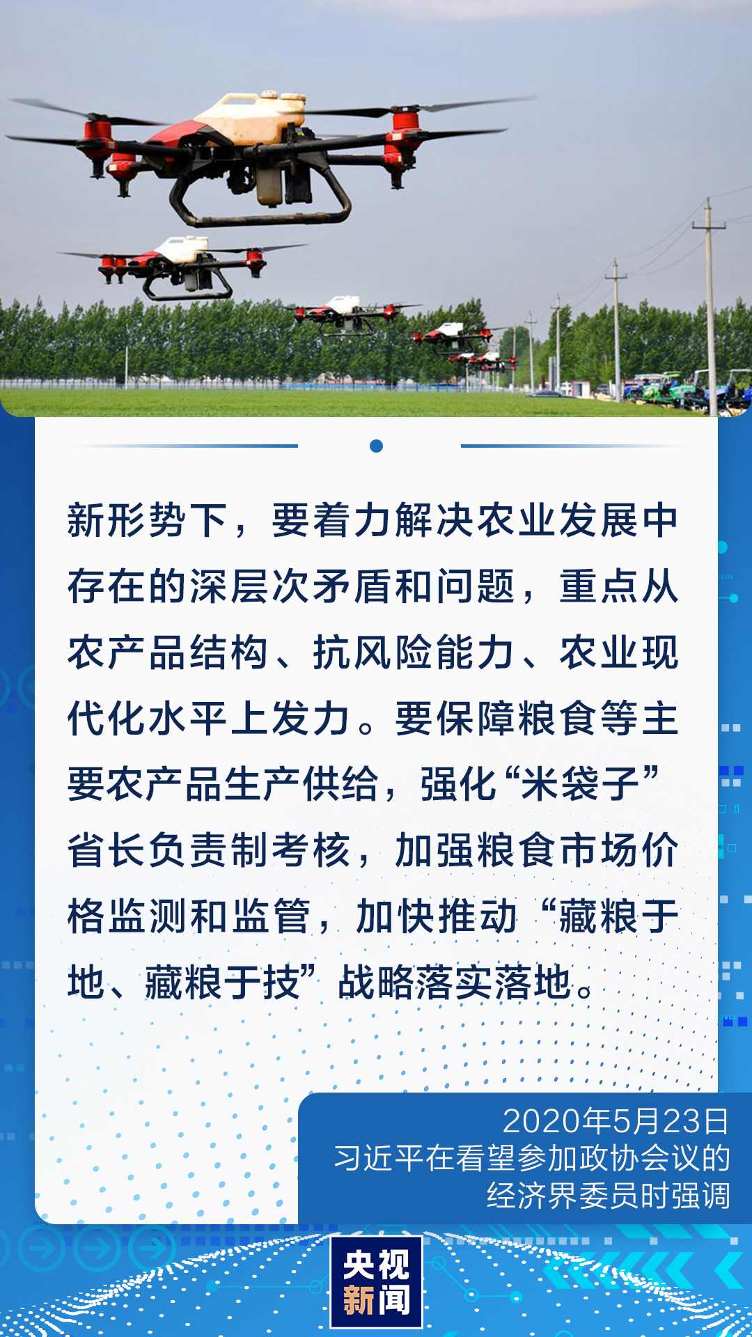 對(duì)我們這樣一個(gè)有著14億人口的大國(guó)來(lái)說(shuō),農(nóng)業(yè)基礎(chǔ)地位任何時(shí)候都不能忽視和削弱,手中有糧、心中不慌在任何時(shí)候都是真理。今年開春,習(xí)近平總書記對(duì)全國(guó)春季農(nóng)業(yè)生產(chǎn)工作作出重要指示強(qiáng)調(diào),越是面對(duì)風(fēng)險(xiǎn)挑戰(zhàn),越要穩(wěn)住農(nóng)業(yè),越要確保糧食和重要副食品安全。