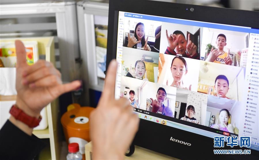 位于吉林省長春市的東北師范大學(xué)第二附屬小學(xué)6年級學(xué)生參加“云班會”(5月29日攝)。新華社記者許暢攝