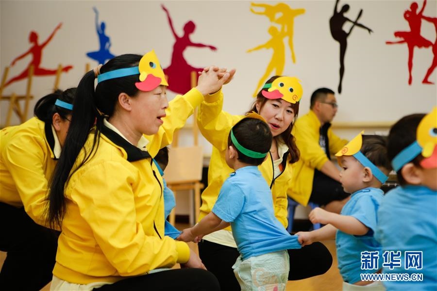 在呼和浩特市兒童福利院舉行的“心懷感恩·多彩六一”文藝演出活動上,孩子們和老師一起表演(2018年6月1日攝)。新華社記者虞東升攝