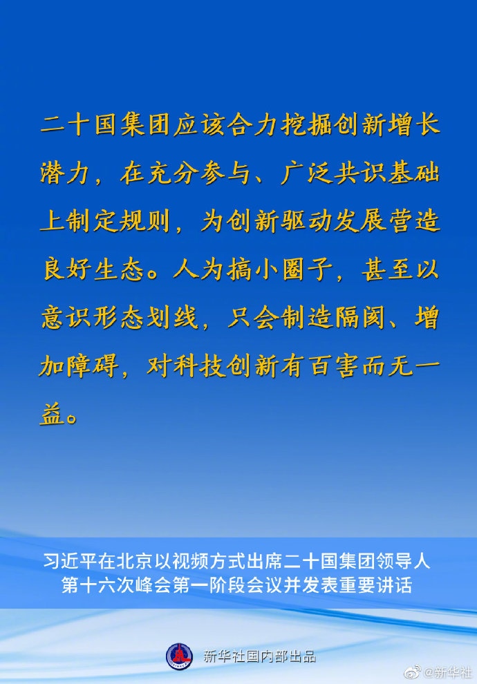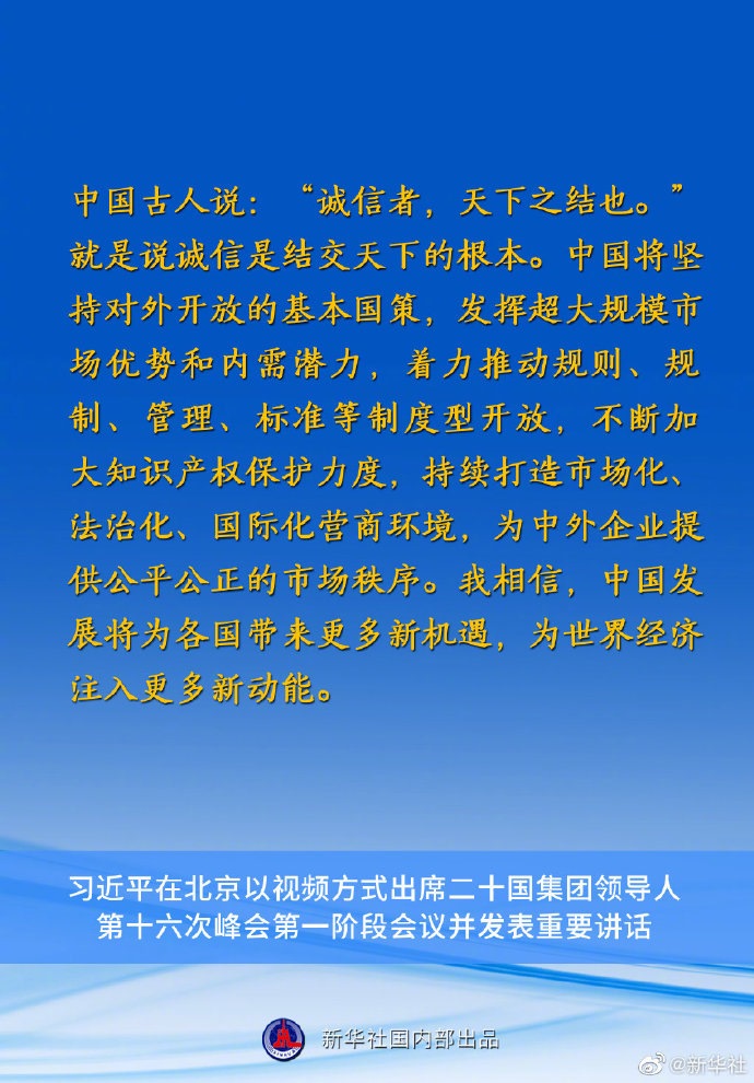 習(xí)近平主席在二十國(guó)集團(tuán)領(lǐng)導(dǎo)人第十六次峰會(huì)第一階段會(huì)議上的重要講話要點(diǎn)速覽