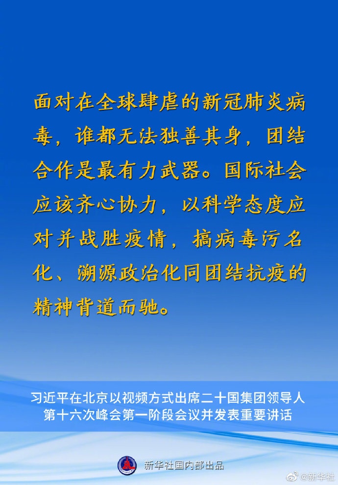 國(guó)家主席習(xí)近平10月30日在北京以視頻方式出席二十國(guó)集團(tuán)領(lǐng)導(dǎo)人第十六次峰會(huì)第一階段會(huì)議并發(fā)表重要講話。講話有哪些要點(diǎn),一起來看↓