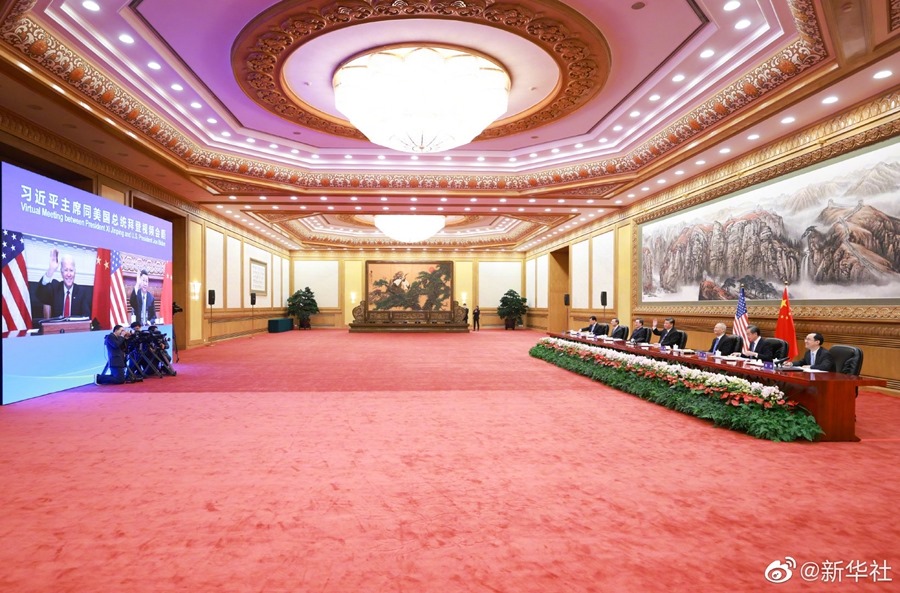 習(xí)近平強(qiáng)調(diào),推動(dòng)中美各自發(fā)展,維護(hù)和平穩(wěn)定的國際環(huán)境,包括有效應(yīng)對(duì)氣候變化、新冠肺炎疫情在內(nèi)的全球性挑戰(zhàn),都需要一個(gè)健康穩(wěn)定的中美關(guān)系。中美應(yīng)該相互尊重、和平共處、合作共贏。我愿同總統(tǒng)先生一道,形成共識(shí),積極行動(dòng),引領(lǐng)中美關(guān)系積極向前發(fā)展。這是造福兩國人民的需要,也是國際社會(huì)的期待。
