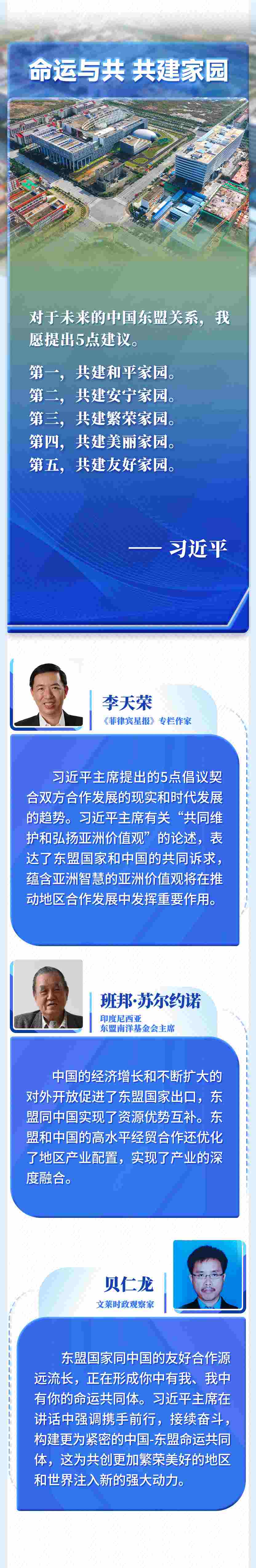 對于未來的中國東盟關系,我愿提出5點建議。