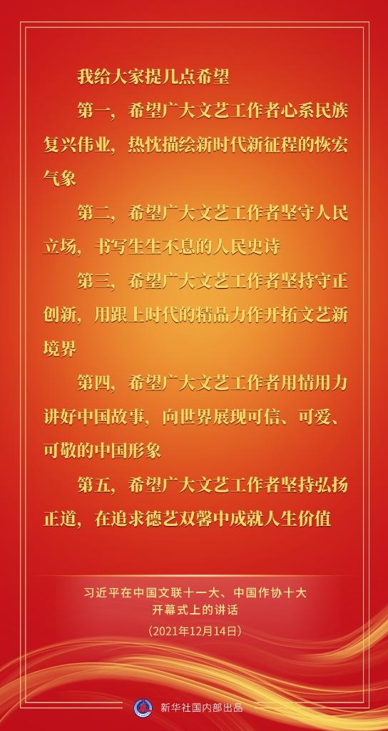 中國文學(xué)藝術(shù)界聯(lián)合會第十一次全國代表大會、中國作家協(xié)會第十次全國代表大會14日上午在北京人民大會堂開幕。習(xí)近平出席大會并發(fā)表重要講話。戳金句,看要點。