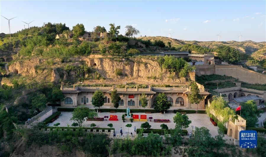 游人在陜西省榆林市米脂縣楊家溝革命舊址參觀(9月10日攝,無(wú)人機(jī)照片)。新華社記者陶明攝