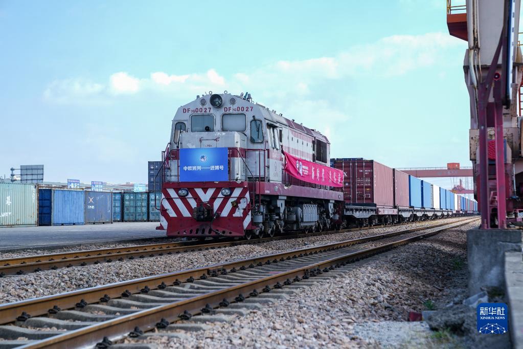 2021年10月29日,首班“中歐班列—進博號”列車抵達上海。當日,首班“中歐班列—進博號”到達上海,從德國漢堡出發(fā)的該趟班列上裝載了智能真空噴射沖洗系統(tǒng)、電機零件等第四屆中國國際進口博覽會參展展品,這也是進博會展品首次坐中歐班列直達上海。新華社記者 丁汀 攝