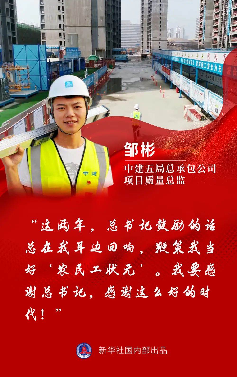 “這兩年,總書記鼓勵(lì)的話總在我耳邊回響,鞭策我當(dāng)好‘農(nóng)民工狀元’。我要感謝總書記,感謝這么好的時(shí)代!”鄒彬臉上洋溢著青春的光芒。