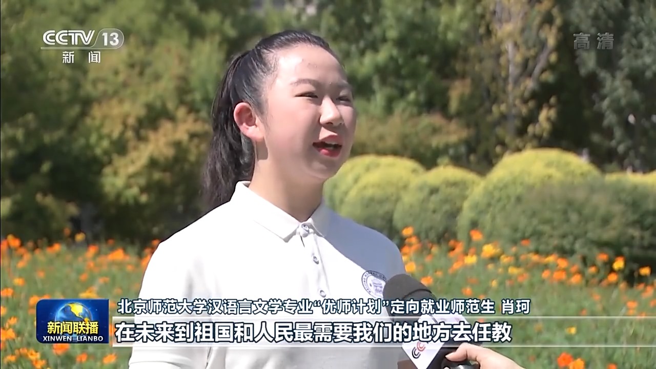 北京師范大學漢語言文學專業(yè)“優(yōu)師計劃”定向就業(yè)師范生肖珂:總書記勉勵我們增長傳道授業(yè)解惑本領(lǐng),在未來到祖國和人民最需要我們的地方去任教。我定不負囑托,努力學習,在畢業(yè)后回到我的家鄉(xiāng)。