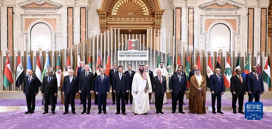 當?shù)貢r間12月9日下午,首屆中國-阿拉伯國家峰會在沙特首都利雅得阿卜杜勒阿齊茲國王國際會議中心舉行。國家主席習近平和沙特王儲兼首相穆罕默德、埃及總統(tǒng)塞西、約旦國王阿卜杜拉二世、巴林國王哈馬德、科威特王儲米沙勒、突尼斯總統(tǒng)賽義德、吉布提總統(tǒng)蓋萊、巴勒斯坦總統(tǒng)阿巴斯、卡塔爾埃米爾塔米姆、科摩羅總統(tǒng)阿扎利、毛里塔尼亞總統(tǒng)加茲瓦尼、伊拉克總理蘇達尼、摩洛哥首相阿赫努什、阿爾及利亞總理阿卜杜拉赫曼、黎巴嫩總理米卡提等21個阿盟國家領導人以及阿拉伯國家聯(lián)盟秘書長蓋特等國際組織負責人出席峰會。習近平在會上發(fā)表題為《弘揚中阿友好精神 攜手構建面向新時代的中阿命運共同體》的主旨講話。新華社記者 謝環(huán)馳 攝