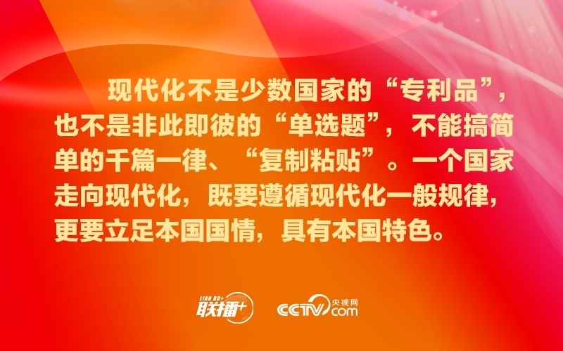 要堅持共享機遇、共創(chuàng)未來,共同做大人類社會現(xiàn)代化的“蛋糕”,努力讓現(xiàn)代化成果更多更公平惠及各國人民,堅決反對通過打壓遏制別國現(xiàn)代化來維護自身發(fā)展“特權(quán)”。