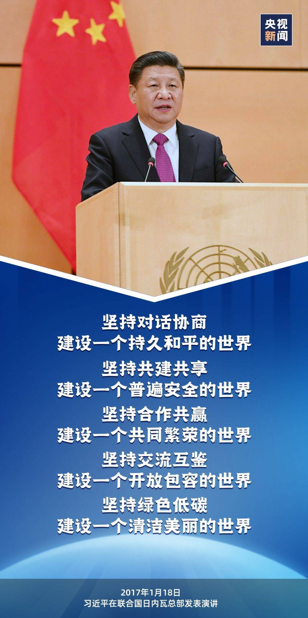 這樣的情景出現(xiàn)在2017年1月,習(xí)近平主席在聯(lián)合國日內(nèi)瓦總部發(fā)表題為《共同構(gòu)建人類命運(yùn)共同體》的主旨演講的現(xiàn)場(chǎng)。