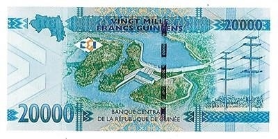 △在幾內(nèi)亞央行發(fā)行的該國最大面值兩萬幾郎紙幣上,印著中國長江三峽集團(tuán)有限公司總承建的凱樂塔水電站。