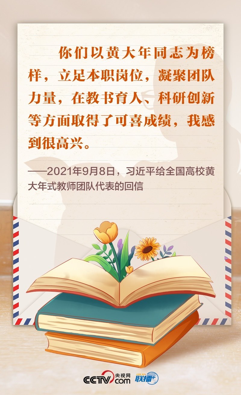 2021年,首批黃大年式教師團(tuán)隊的代表給總書記寫信,匯報教學(xué)、科研等工作情況,表達(dá)了堅守教育報國理想、為民族復(fù)興貢獻(xiàn)力量的決心??倳浕匦趴隙舜蠹业墓ぷ鞒尚?,勉勵大家繼續(xù)學(xué)習(xí)弘揚(yáng)黃大年同志等優(yōu)秀教師的高尚精神,立德修身,潛心治學(xué),開拓創(chuàng)新,真正把為學(xué)、為事、為人統(tǒng)一起來,當(dāng)好學(xué)生成長的引路人。